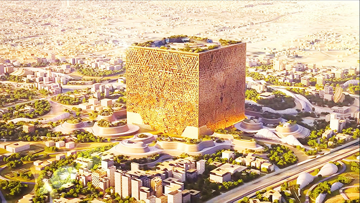 Theo CNN, Arabia Saudi vừa khởi công xây dựng dự án tòa nhà lớn nhất thế giới trị giá 50 tỷ USD, có tên gọi là “The Mukaab” tại Thủ đô Riyadh của nước này. Tòa nhà mới sẽ cao gần 400 m (trong ảnh), gồm 104.000 đơn vị nhà ở và 9.000 phòng khách sạn, có sức chứa tương đương 20 tòa nhà 100 tầng.