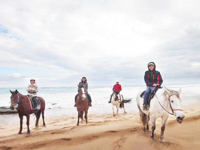 Đối với nhiều bạn, đây là lần đầu được ngồi lên yên ngựa. Dù đã từng nhìn thấy ngựa, tôi vẫn ngạc nhiên trước những con ngựa cao to lừng lững được chủ trại dắt ra. Mỗi người đều phải đội mũ bảo hiểm và dành năm phút để làm quen, thuộc tên “bạn” ngựa mình sẽ cưỡi. Một bạn nữ bắt đầu sợ khi ngồi ngất ngưởng trên độ cao 1.7m, nhưng rồi nhìn thấy phía xa xa một cô bé tầm sáu tuổi đang thoăn thoắt điều khiển một chú ngựa nhảy qua những thanh gỗ thấp thì lại thấy tự tin lên rất nhiều. Đoàn người ngựa đi thành hàng một, với hai “kỵ sĩ” chuyên nghiệp đi bên cạnh để bảo đảm an toàn. Vừa đi được một đoạn thong dong theo hàng lối, đã có mấy bạn hí hửng rằng cưỡi ngựa dễ ợt. Nhưng...