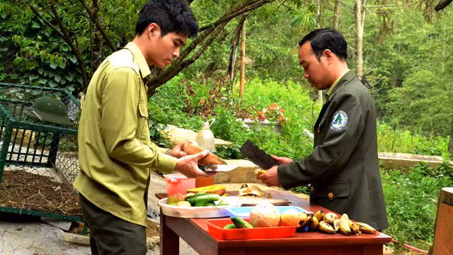 Chuẩn bị thức ăn cho động vật hoang dã ở Trung tâm cứu hộ, bảo tồn và phát triển sinh vật Hoàng Liên.