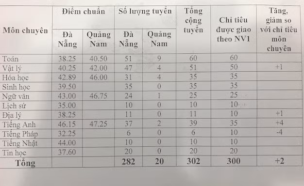 Điểm chuẩn vào các môn chuyên trường THPT Chuyên Lê Quý Đôn: