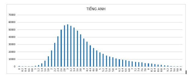 Chiều 11-7, Bộ GD-ĐT công bố phổ điểm các môn Kỳ thi THPT quốc gia 2018. Theo đó, các môn Toán, Ngữ văn, Vật lý, Địa lý có điểm trung bình trong khoảng 5 - 6 điểm. Các môn Hóa học, Sinh học, Lịch sử, Tiếng Anh có điểm trung bình trong khoảng 4-5 điểm. Riêng môn Tiếng Anh, 78,22% thí sinh có điểm dưới trung bình (dưới 5 điểm), điểm trung bình là 3,91, điểm trung vị là 3,6. Có 2.189 thí sinh điểm bằng 1 và thấp hơn.