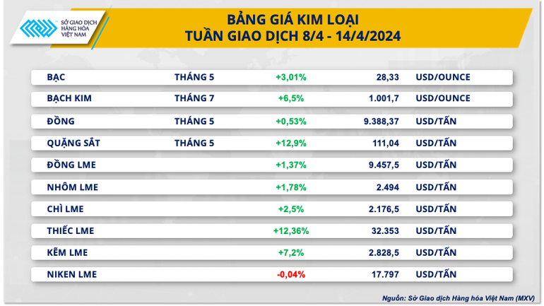 Diễn biến mới nhất và cuối tuần qua cho thấy, căng thẳng Iran-Israel đã đẩy lên mức mới, kéo theo nguy cơ xung đột tại Trung Đông có thể lan rộng. Tương tự dầu thô, giá kim loại quý có thể sẽ biến động mạnh ngay từ đầu tuần này. MXV khuyến nghị tất cả thành viên thị trường theo dõi, tập trung công tác trị rủi ro ở mức cao nhất trong phiên giao dịch ngày 15/4/2024 và trong các phiên tiếp theo; có khuyến nghị, thông báo đến khách hàng, nhà đầu tư về việc duy trì tỷ lệ ký quỹ an toàn phù hợp với trạng thái hiện tại.