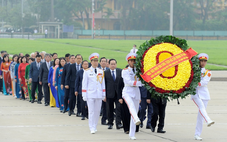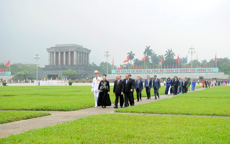 Trước anh linh Chủ tịch Hồ Chí Minh, các đồng chí lãnh đạo Đảng, Nhà nước cùng các đại biểu Quốc hội thành kính bày tỏ lòng biết ơn vô hạn với công lao của Người đối với sự nghiệp cách mạng vẻ vang của Đảng và dân tộc ta.