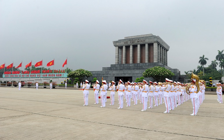 Đoàn quân nhạc trên Quảng trường Ba Đình.