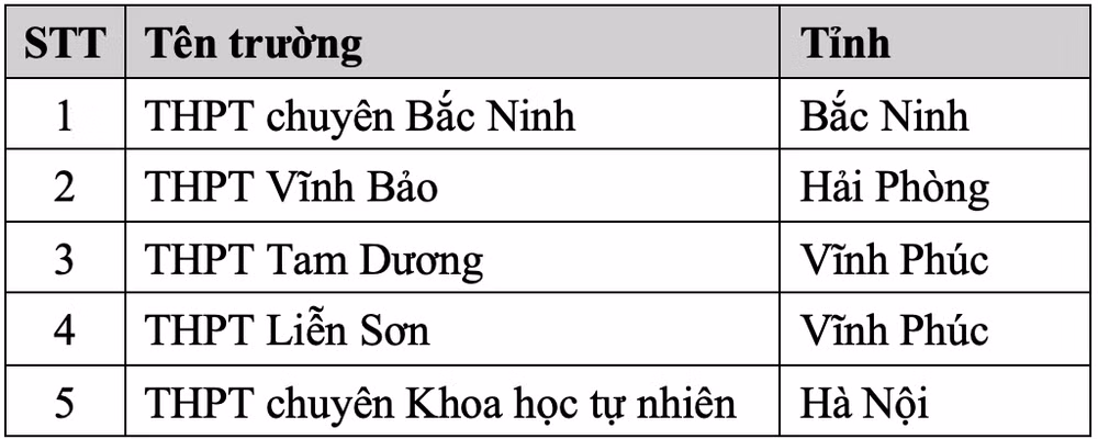 5 thí sinh đạt điểm cao nhất Đánh giá tư duy đợt 1 là các thí sinh đến từ các trường THPT sau: