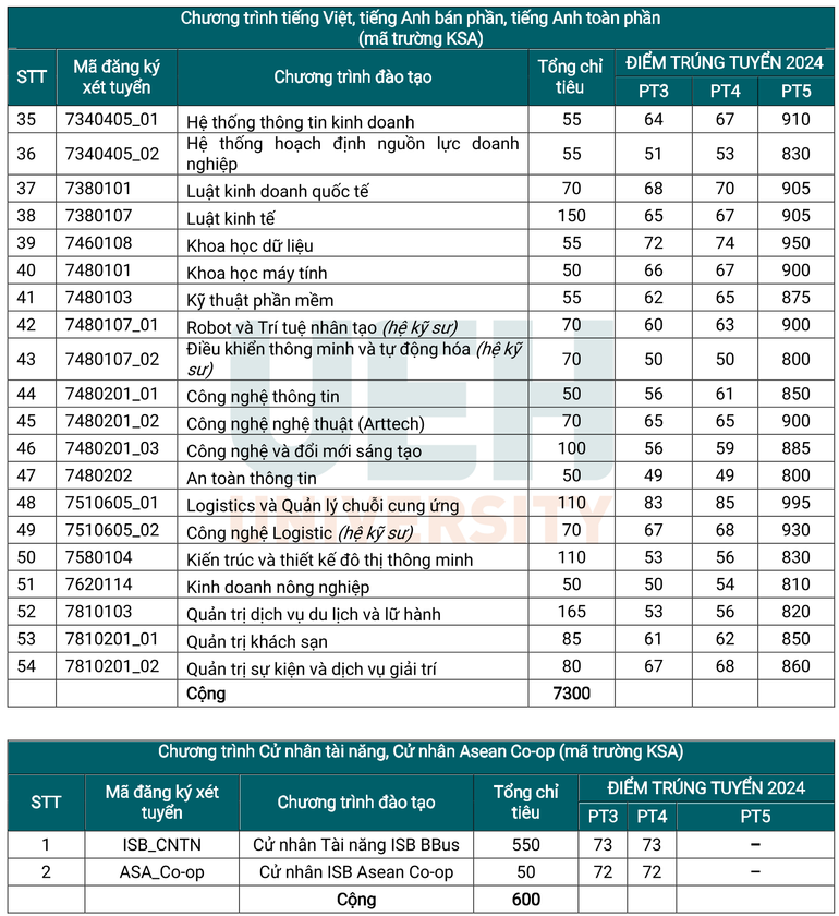 Kết quả xét tuyển cho thấy, điểm chuẩn 56 chương trình đào tạo tăng mạnh so với năm 2023. Cụ thể, tại Thành phố Hồ Chí Minh (mã trường: KSA), điểm chuẩn PT3 dao động từ 48-83, ngành tăng cao nhất là 11 điểm.