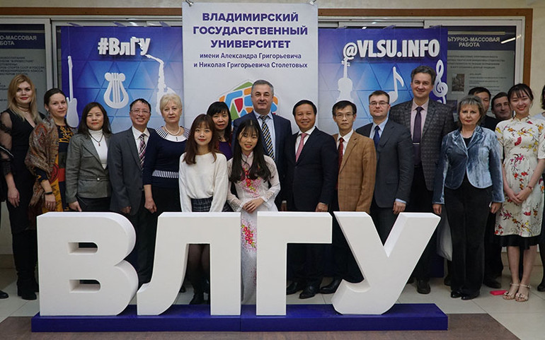 Chụp ảnh lưu niệm với thầy trò trường Đại học Tổng hợp quốc gia Vladimir mang tên Stoletovykh (VISU).