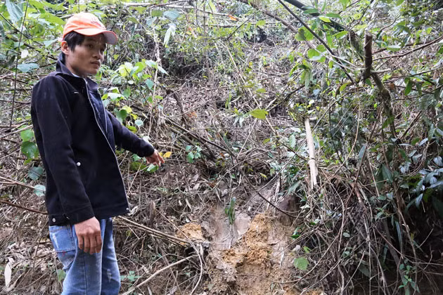 Dấu vết của voi rừng xuất hiện ở xã Quế Lâm.