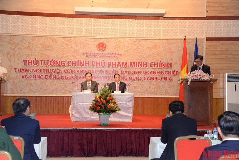Về tình hình bà con người Việt Nam ở Campuchia, Thủ tướng rất chia sẻ với những khó khăn vất vả chống chọi với đại dịch Covid-19 trong hơn 2 năm qua của bà con; chia sẻ về những khó khăn, vướng mắc liên quan vấn đề pháp lý, những khó khăn trong cuộc sống mà bà con đang gặp phải.
