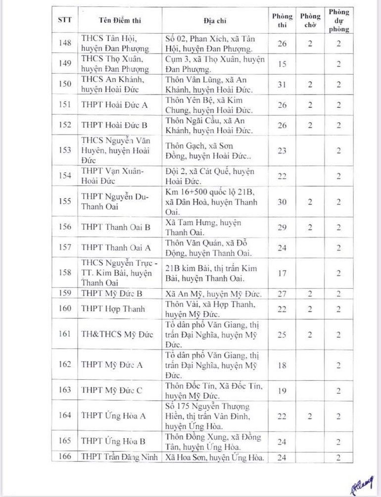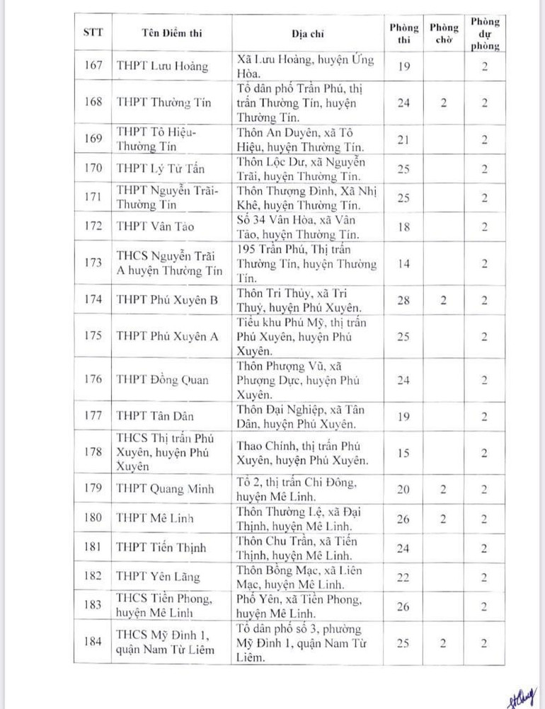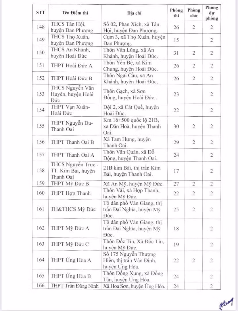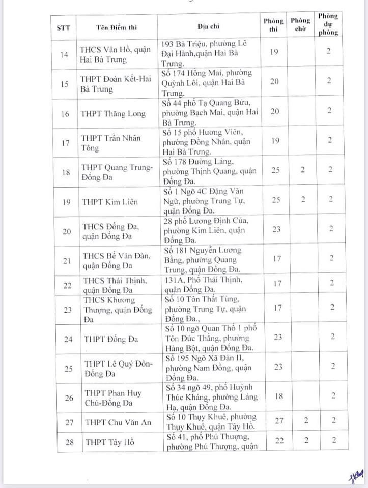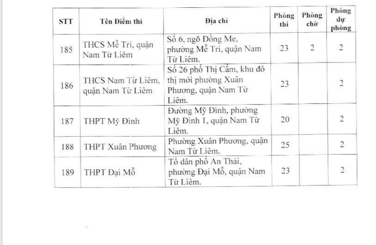 Dưới đây là danh sách 189 điểm thi của Hà Nội: