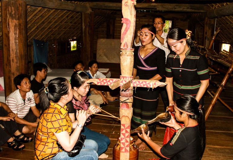 Và sau những chuyến hành trình, cảm giữa thưởng thức cơm lam với thịt rừng, cùng nghe điệu cồng chiêng và bộ nhạc cụ đàn đá, bộ gõ làm từ cây lồ ô với điệu múa của người con gái M’Nông bên ché rượu cần cũng là trải nghiệm quý báu. Âm ba vang vọng của núi rừng hay tiếng cồng chiêng huyền hoặc trong men say chếch choáng bởi ché rượu cần đưa những bước chân dìu dặt cùng những vũ điệu nhẹ nhàng làm say lòng lữ khách.