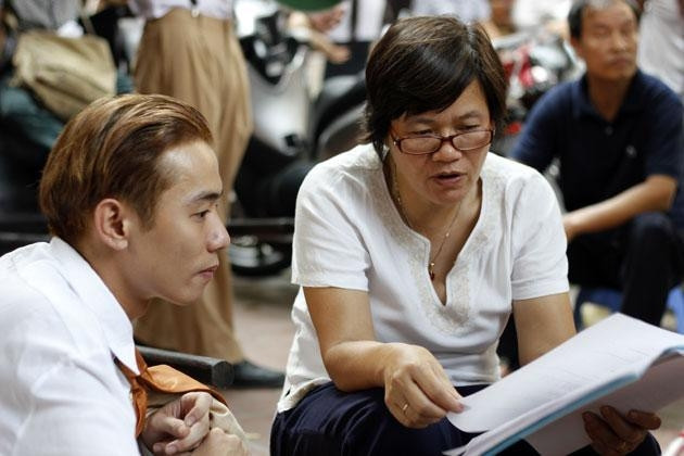 Trao đổi với diễn viên Việt Bắc trước khi quay.