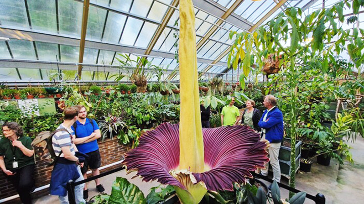 Theo AP, du khách đang đổ xô tới vườn thực vật của Đại học Leiden ở Hà Lan để ngắm những bông hoa của loài cây đặc biệt có tên khoa học là Amorphophallus gigas (trong ảnh), còn gọi là “hoa xác chết” hay “hoa xác thối” do đặc tính tỏa mùi rất khó chịu. Loài Amorphophallus khó ra hoa, thường với tần suất là khoảng 10 năm ra hoa một lần duy nhất.