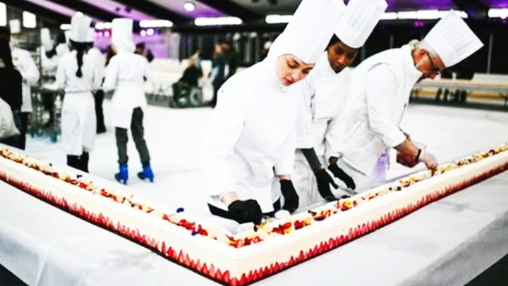 Các nghệ nhân làm bánh ngọt người Pháp mới đây làm ra chiếc bánh dâu tây dài tới 121,8 m (trong ảnh). Theo World Record Academy, để làm nên chiếc bánh này, các đầu bếp đã sử dụng 4.000 quả trứng, 350 kg dâu tây tươi ngon, 150 kg đường và 415 kg kem.