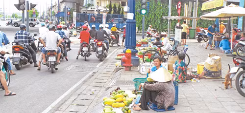 Chợ tự phát buôn bán xôm tụ trên đường Võ Văn Kiệt.