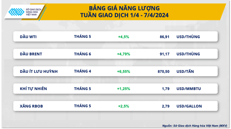 Sở Giao dịch Hàng hóa Việt Nam (MXV) cho biết, trong tuần này, tâm điểm của thị trường sẽ tiếp tục hướng đến nhóm dầu thô, với các báo cáo tháng 4 của Cơ quan Quản lý Năng lượng Mỹ (EIA) vào thứ ba (9/4) và báo cáo của nhóm OPEC vào thứ năm (11/4). Nhìn chung, giới phân tích đang kỳ vọng các số liệu sẽ phản ánh tình trạng thiếu hụt nguồn cung, tuy nhiên theo MXV, giá dầu đang có các mức chặn trên khá vững, ở vùng 95-100 USD/thùng, nên tạm thời giá dầu sẽ chưa thể vượt lên các vùng giá quan trọng này, ít nhất là trong ngắn hạn.