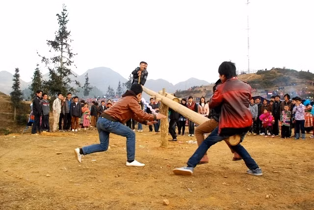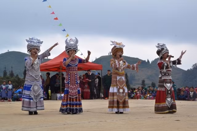 Các thiếu nữ Mông trong trang phục rực rỡ sắc mầu tái hiện phong tục, tập quán và văn nghệ dân gian của dân tộc mình. Sôi động và tưng bừng nhất là khu thi đấu các môn thể thao truyền thống dân tộc Mông. Các chàng trai so tài cao thấp, thể hiện sức khỏe, bản lĩnh và trí tuệ của người miền sơn cước.