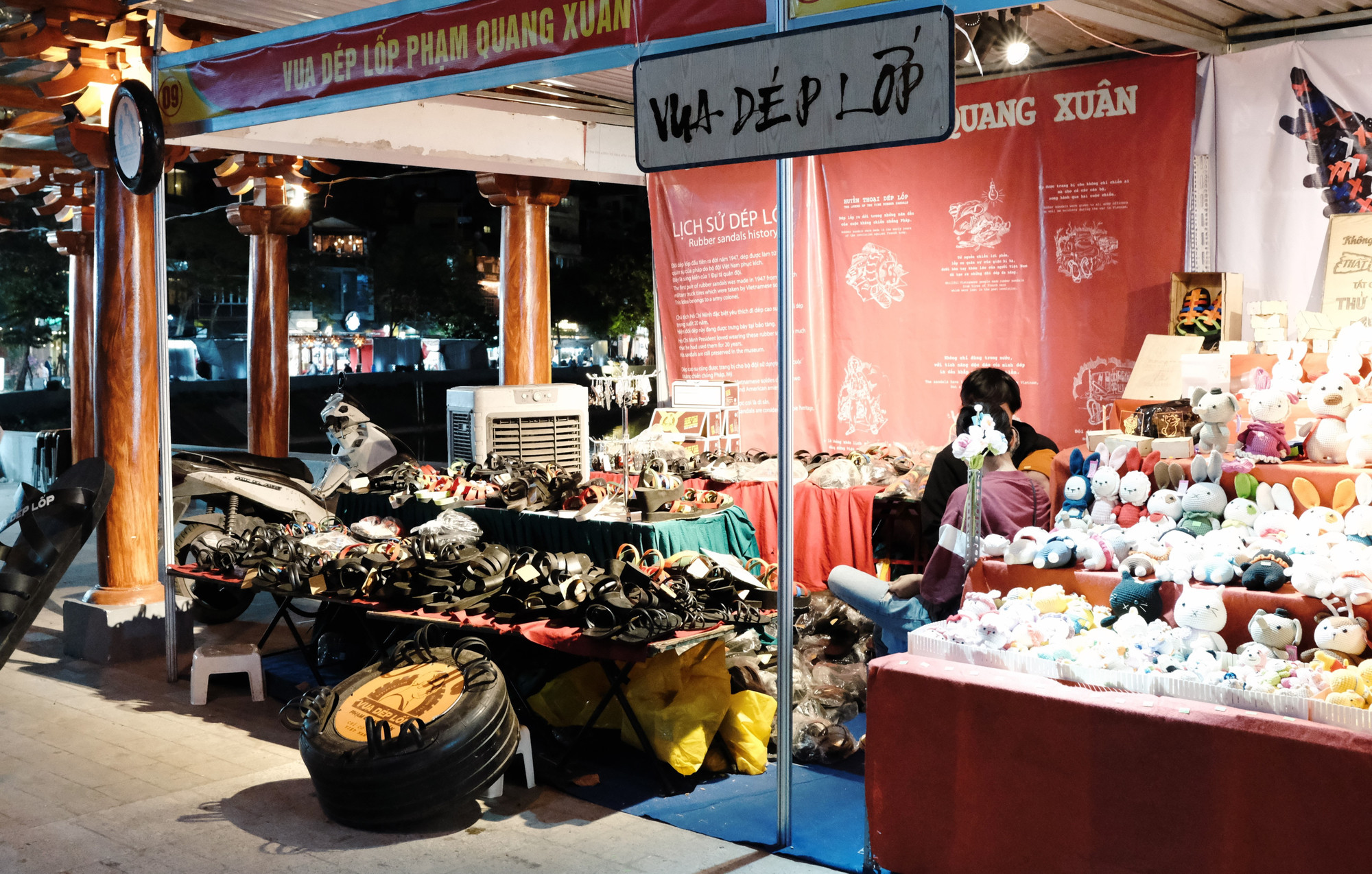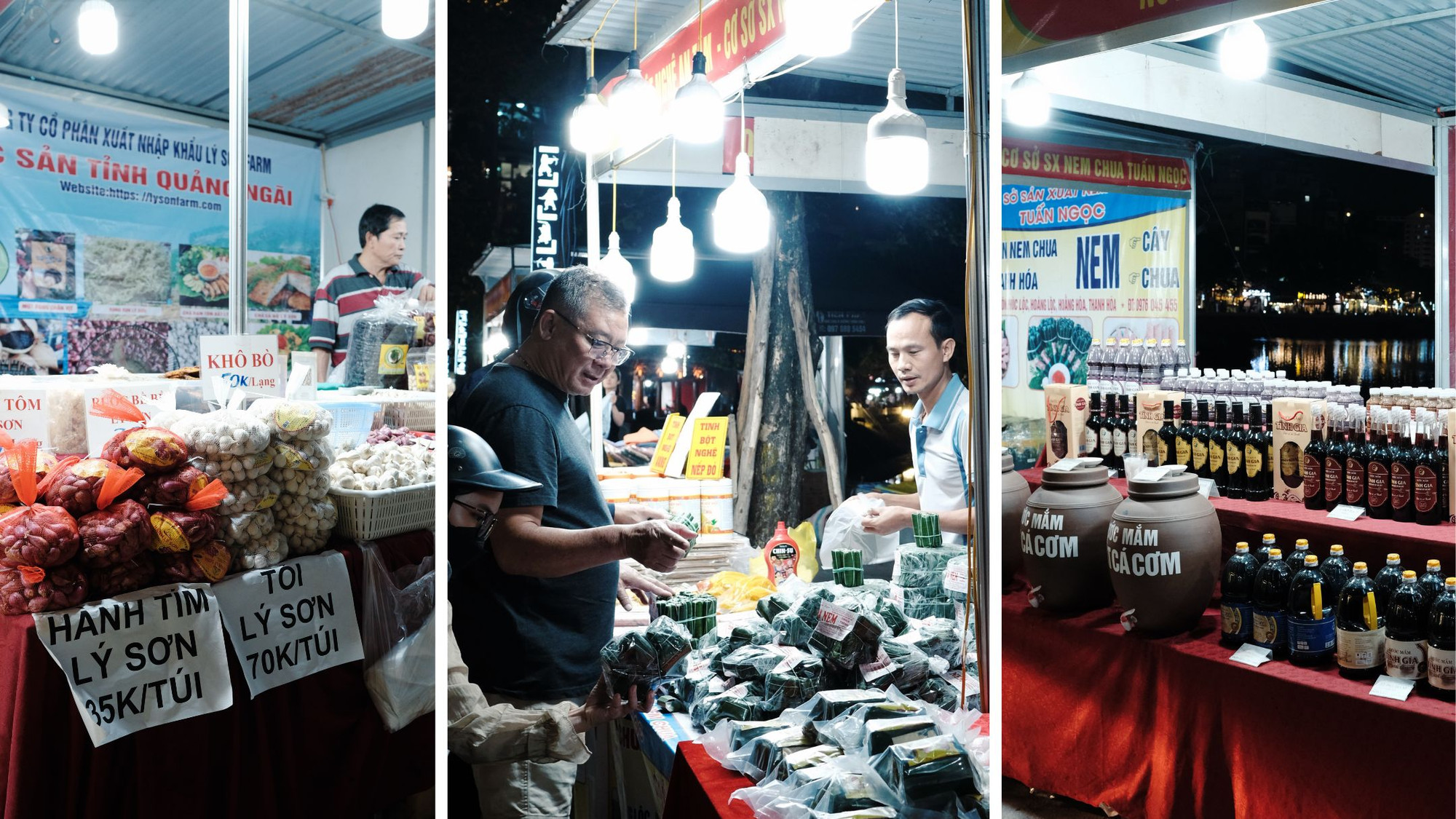 Khu vực gian hàng trưng bày, bán và giới thiệu quảng bá các sản phẩm tiềm năng, sản phẩm tiêu biểu, sản phẩm thủ công mỹ nghệ, sản phẩm làng nghề, sản phẩm OCOP như cốm, sữa Ba vì, dép lốp cao su…