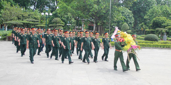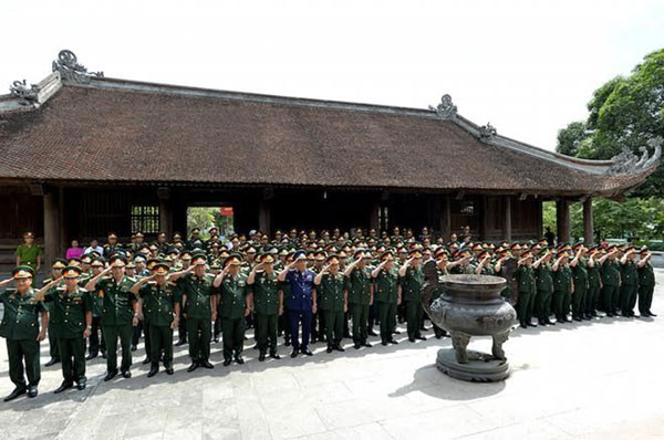 Đoàn sĩ quan, tướng lĩnh Bộ Quốc phòng dâng hoa tại Khu di tích Kim Liên.