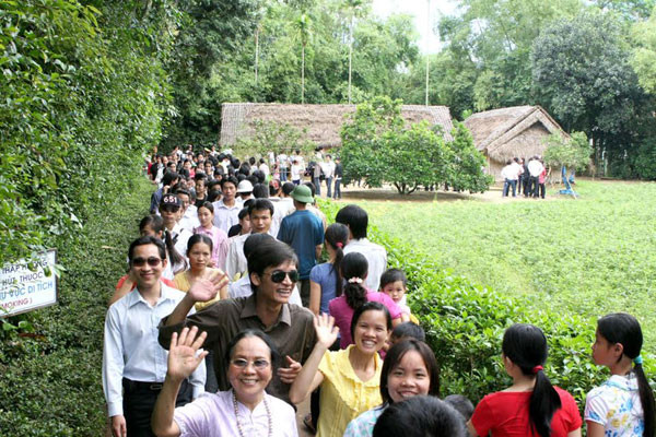Du khách về thăm quê Bác.