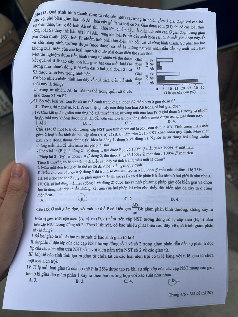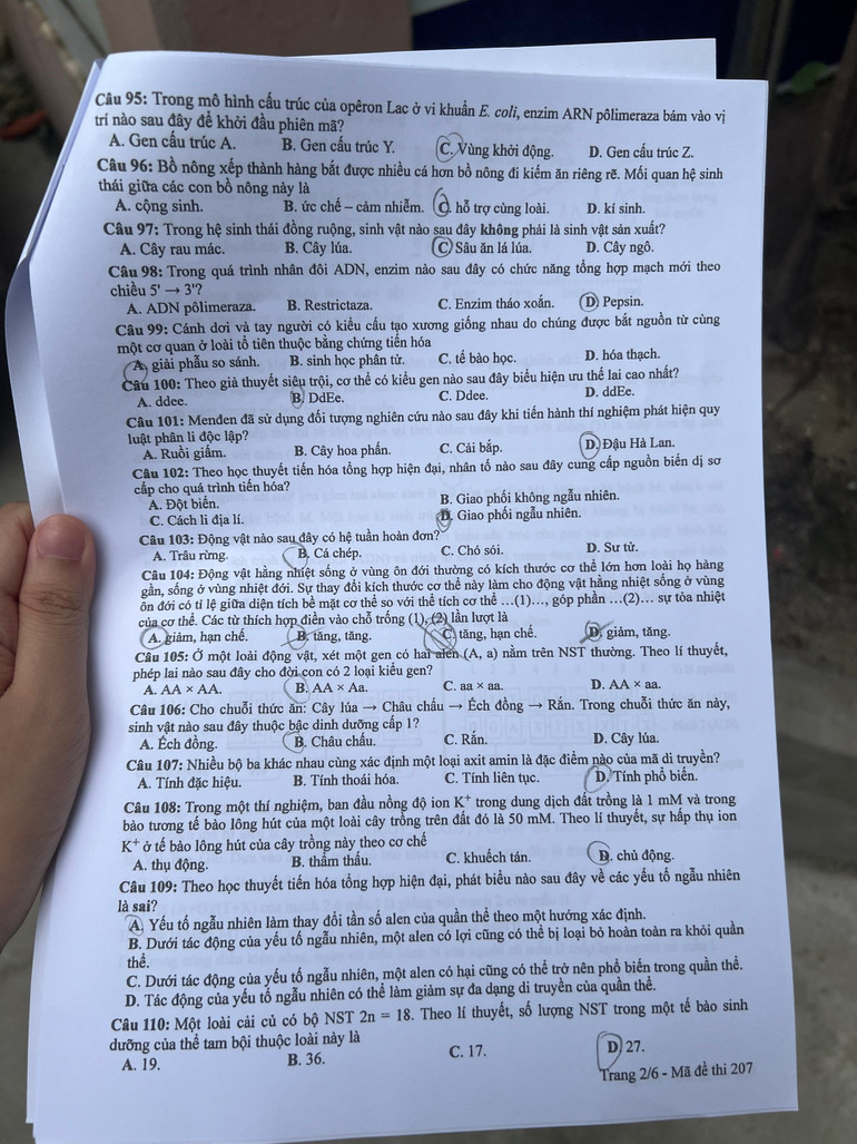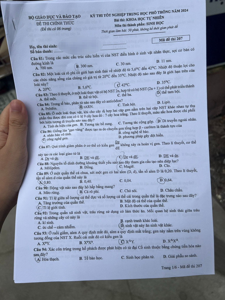 Đề thi môn Sinh học, mã đề 207 Kỳ thi tốt nghiệp THPT năm 2024