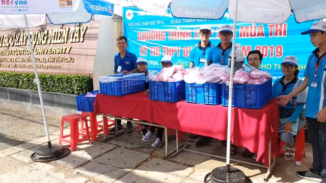 Bên cạnh đó, Tỉnh đoàn Vĩnh Long và Trường Đại học xây dựng Miền Tây cũng cung cấp 2.000 suất cơm và nước uống miễn phí cho thí sinh dự thi tại TP Vĩnh Long và huyện Long Hồ. Đồng thời, trợ giúp 100 học sinh có hoàn cảnh khó khăn, mỗi em 100.000 đồng để làm chi phí đi lại, ăn uống; thành lập 23 đội thanh niên tình nguyện tại 23 điểm thi để hỗ trợ, đưa rước thí sinh dự thi.