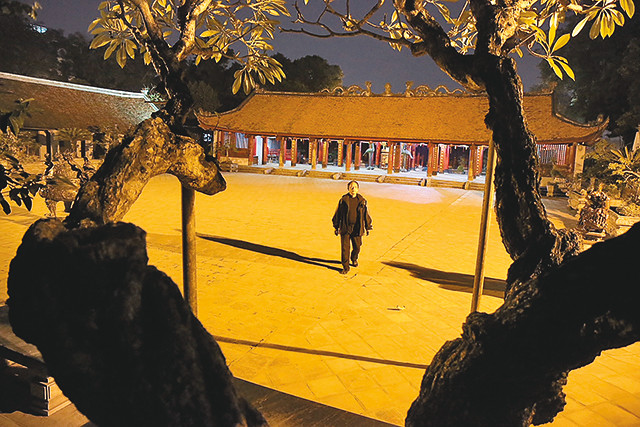Rảo bước trong Văn Miếu đêm giao thừa. Ảnh trong bài Hồng Vĩnh