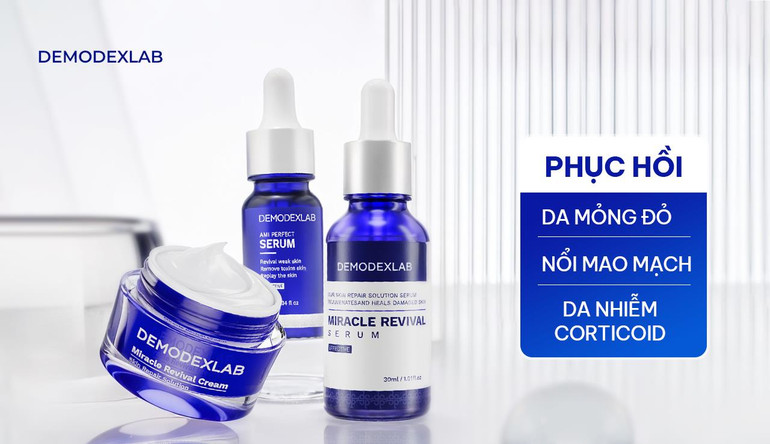 Các vấn đề da hư tổn mà thương hiệu Demodexlab tập trung giải quyết Demodexlab được biết đến với khả năng giải quyết những vấn đề nghiêm trọng về da như da mỏng đỏ, giãn mao mạch, da nhiễm corticoid và viêm da do demodex,... Những vấn đề này thường phát sinh từ việc sử dụng các sản phẩm chứa corticoid như “kem trộn”, “thuốc rượu”, hoặc do tiếp xúc lâu dài với môi trường ô nhiễm.