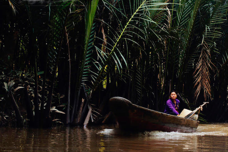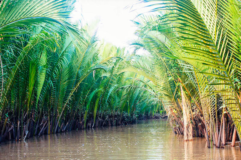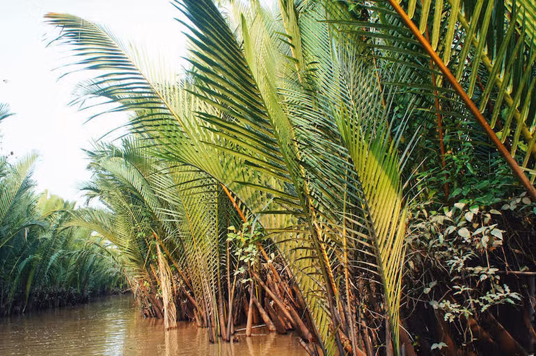 Hình ảnh rừng dừa nước chính là biểu trưng cho du lịch sông Tiền của hai tỉnh Tiền Giang, Bến Tre ngày nay.