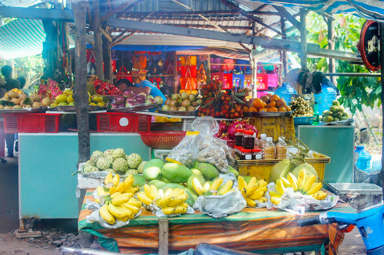 Từ những vườn trái cây nhiệt đới xum xuê trồng trên cù lao, người dân đã biết kết hợp với tour du lịch để quảng bá sản phẩm cho du khách bằng hình thức thưởng thức miễn phí, nếu ưng thì mới mua còn không mua cũng không sao cả. Cồn Lân còn nổi tiếng bởi thức uống được làm từ trà kết hợp với mật ong nuôi, thứ mật mà ong chiết mật từ hoa nhãn rất độc đáo.
