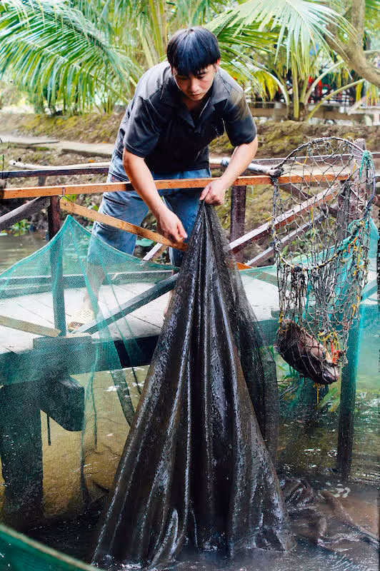 Phù sa bồi đắp màu mỡ nên ẩm thực từ nguồn thủy hải sản ở cồn Quy cũng rất đa dạng, đặc sắc. Bạn còn có cơ hội thưởng thức cá tai tượng, tôm càng xanh, gà nướng đắp đất, các món ăn về dừa... tại những nhà hàng phủ kín cây xanh, đặc trưng miệt vườn ven sông Tiền tại cồn Quy.