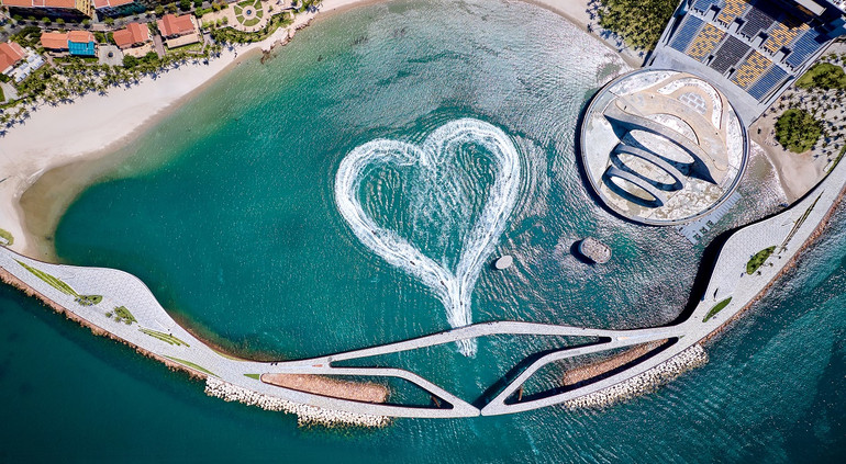 Và đặc biệt, 18 giờ hằng ngày tại Cầu Hôn, du khách còn được xem trọn show trình diễn nghệ thuật thể thao mạo hiểm trên biển Sunset Jetski Show: Vòng xoáy tình yêu (Love Hurricane) với sự tham gia của 18 vận động viên quốc tế với 2 bộ môn Jetski (motor nước) và Flyboard (ván đứng phản lực nước). Sân khấu là mặt nước biển, khán đài là Cầu Hôn đẹp như một tác phẩm nghệ thuật điêu khắc, đây chắc chắn là trải nghiệm đặc biệt mà du khách không khỏi thán phục.