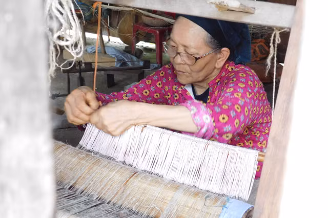 Bà Mai chia sẻ: “Thổ cẩm là báu vật của Lùng Tám. Khắp vùng cao Hà Giang chỗ nào người Mông sinh sống, ở đó có thổ cẩm. Nhưng để sản phẩm thổ cẩm được gìn giữ, phát huy và tỏa sáng thì hiện chỉ duy nhất ở Lùng Tám làm được…”. Quả thật, để làm ra một sản phẩm không hề đơn giản. Tính từ việc trồng lanh, thu hoạch, rồi lanh được phơi khô để chế biến thành sợi. Lúc tách vỏ lanh, đôi tay người phụ nữ phải hết sức khéo sao cho sợi lanh có độ mảnh đều nhau và không bị đứt nửa chừng. Những bó vỏ lanh này được cuộn chặt lại rồi cho vào cối giã đánh bong hết bột, chỉ còn trơ lại sợi dai, rồi cuộn lại thành những con sợi lớn. Qua vài lần luộc với nước tro bếp và một lần luộc nước sáp ong, sợi lanh trắng và mềm hơn. Lúc đó những phụ nữ Mông mới bắt đầu ngồi vào khung dệt.