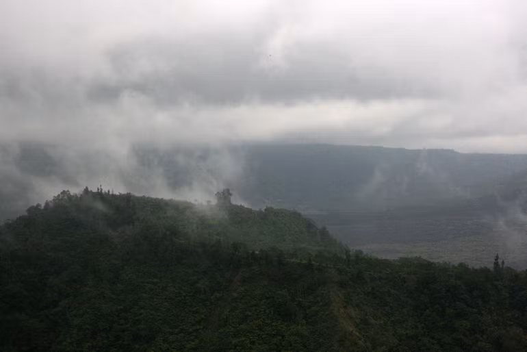 Sườn núi vẫn còn màu đen thẫm của tro than.