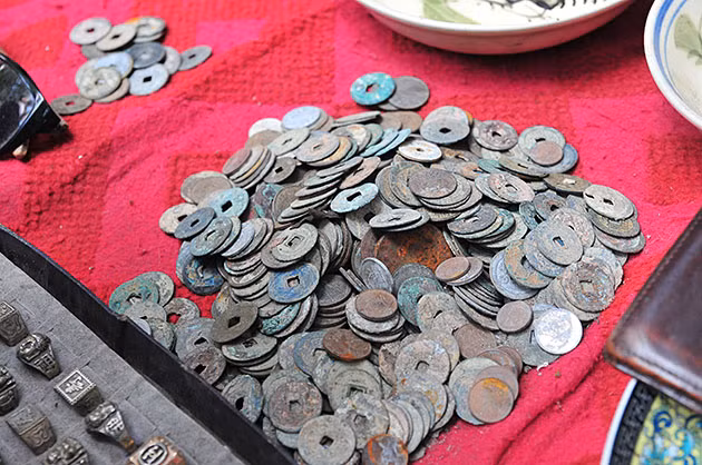 Tiền xu cổ ở phiên chợ đặc biệt này có rất nhiều loại, niên đại. Tuy nhiên, phần lớn những người chủ hàng thường không phân loại mà bán theo số lượng hoặc khối lượng.