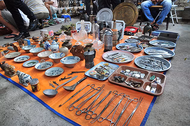 Từ khoảng 8 giờ sáng, khu chợ phiên bé nhỏ nằm lọt thỏm bên dưới số nhà 456 Hoàng Hoa Thám đã chật ních những người đam mê sưu tầm đồ cổ, khách du lịch, hay đơn giản chỉ là những người muốn tìm lại ký ức về những ngày tháng xa xưa.