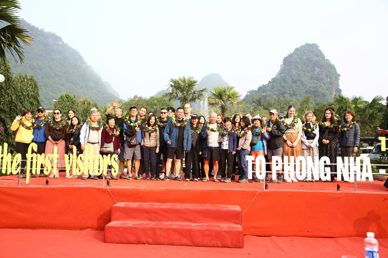 Sáng nay Vườn quốc gia Phong Nha-Kẻ Bàng chào đón 66 vị khách đến “xông đất”, trong đó có 36 khách quốc tế đến từ Malaysia, Autralia, Nhật Bản, Canada, Anh và 30 khách nội địa đến từ Thủ đô Hà Nội, Thành phố Hồ Chí Minh, tỉnh Quảng Ninh, Nghệ An.