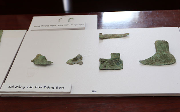 Dấu vết còn lại của rìu, bôn, đục, vòng tay, khuyên tai, hạt chuỗi… cho thấy kỹ thuật chế tác tinh xảo với nguyên liệu đều là từ đá ngọc. Đồ đồng gồm rìu, lưỡi câu, mũi giáo được phát hiện chủ yếu ở tầng văn hóa Đông Sơn nhưng cũng xuất hiện ở cả Gò Mun và Đồng Đậu.