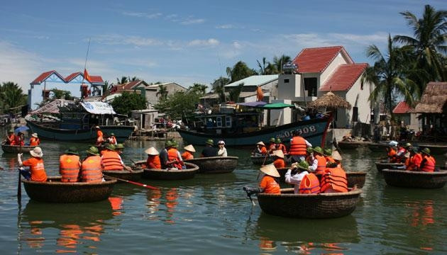 Đội ngũ thuyền thúng của Cẩm Nam luôn sẵn sàng phục vụ du khách.