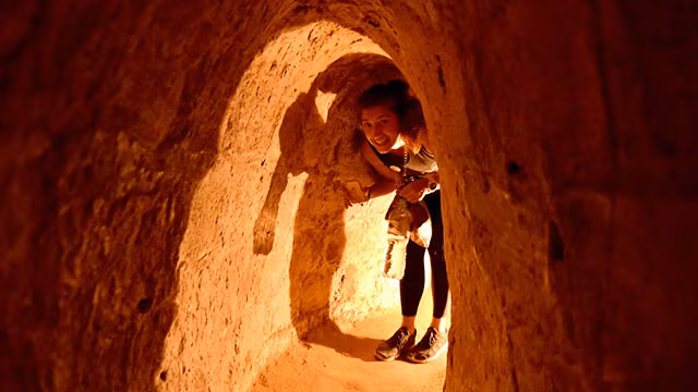 Du khách trải nghiệm cuộc sống dưới lòng đất tại địa đạo Củ Chi.