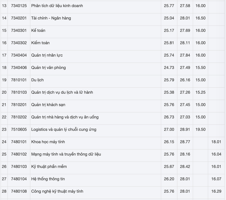 Điểm đủ điều kiện trúng tuyển theo các phương thức xét tuyển sớm của từng ngành như sau: