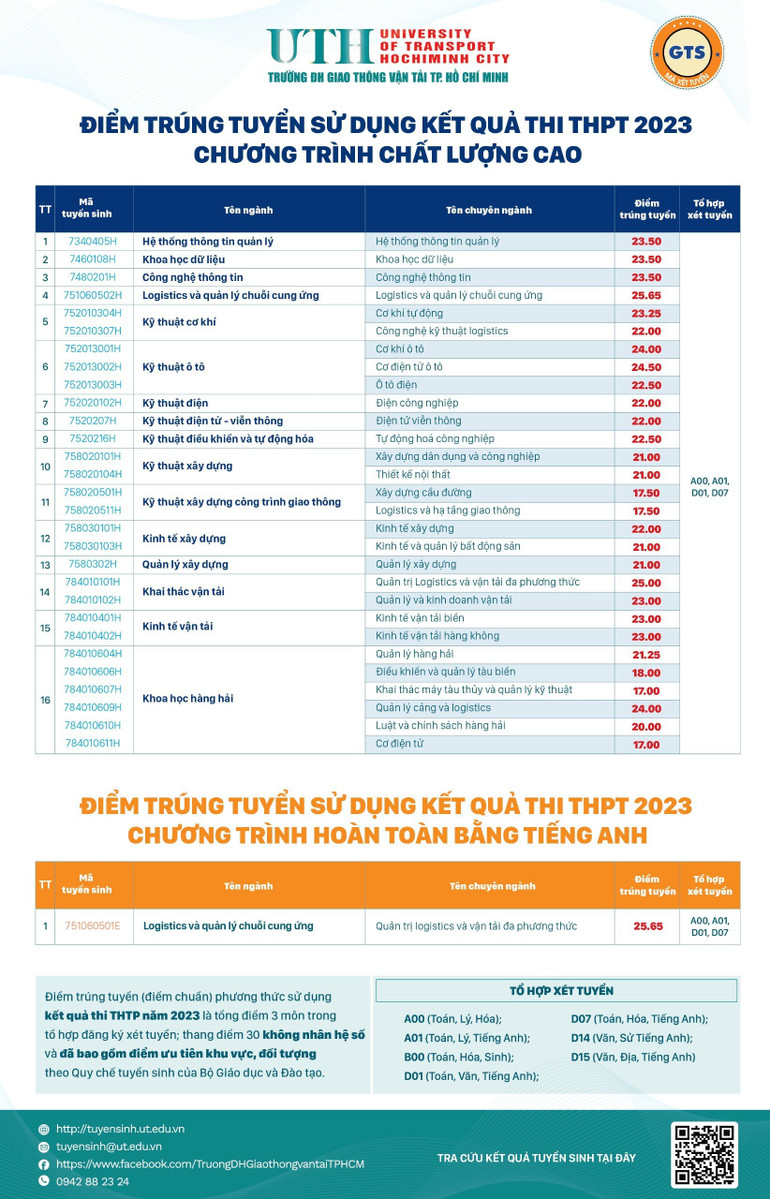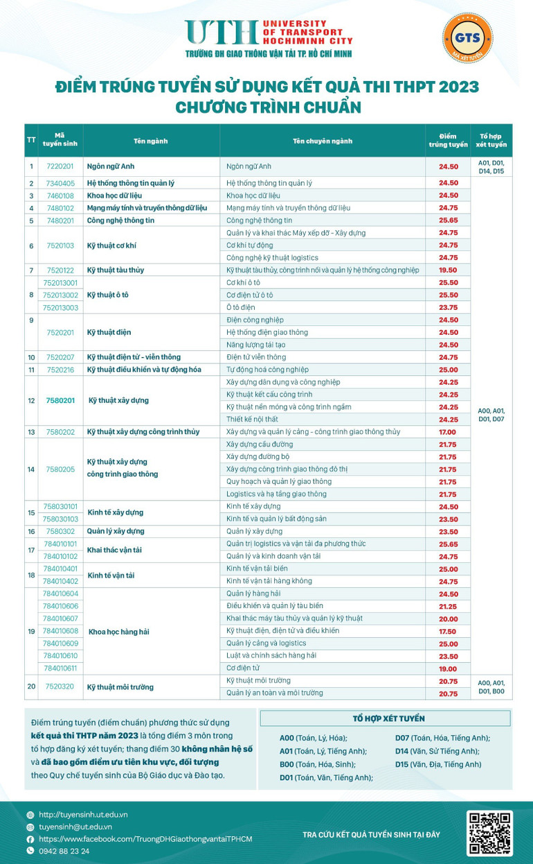 Theo đó, điểm chuẩn của trường này tăng mạnh, dao động từ 17 đến gần 26 điểm. Trong khi năm 2022, điểm chuẩn phương thức sử dụng kết quả thi tốt nghiệp trung học phổ thông của Trường Đại học Giao thông vận tải Thành phố Hồ Chí Minh đa số ở mức 15, chỉ có vài ngành lấy mức 17 và 19 điểm.