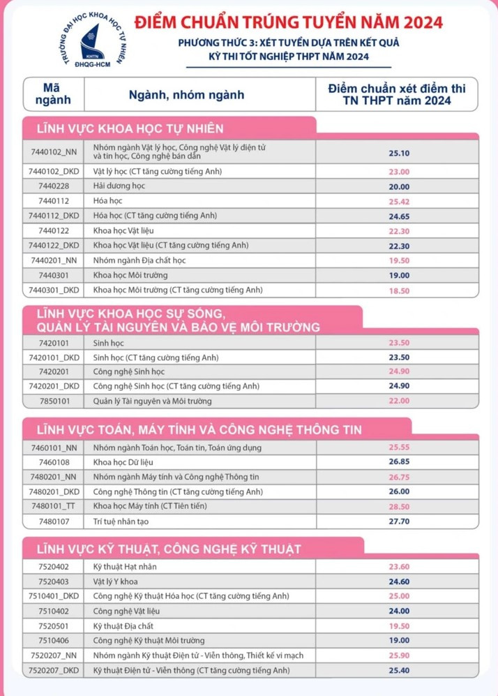 Điểm chuẩn ngành Kỹ thuật hạt nhân năm nay tăng 6,6 điểm; ngành Khoa học vật liệu tăng 5,3 điểm; ngành Quản lý tài nguyên và môi trường tăng 3,5 điểm...