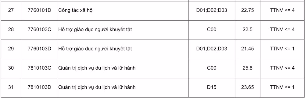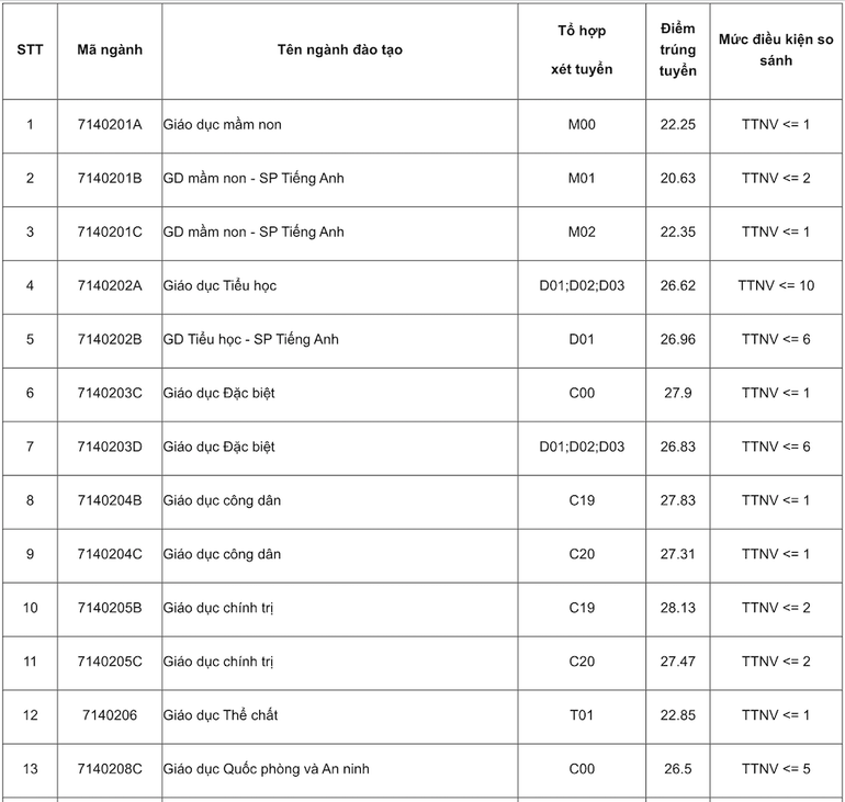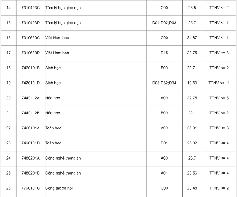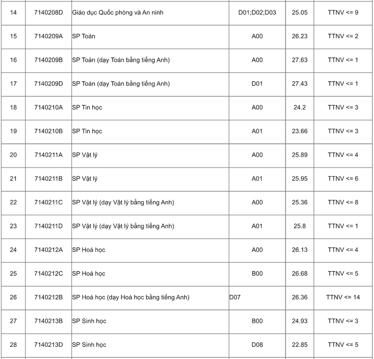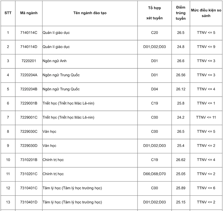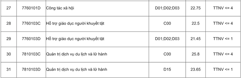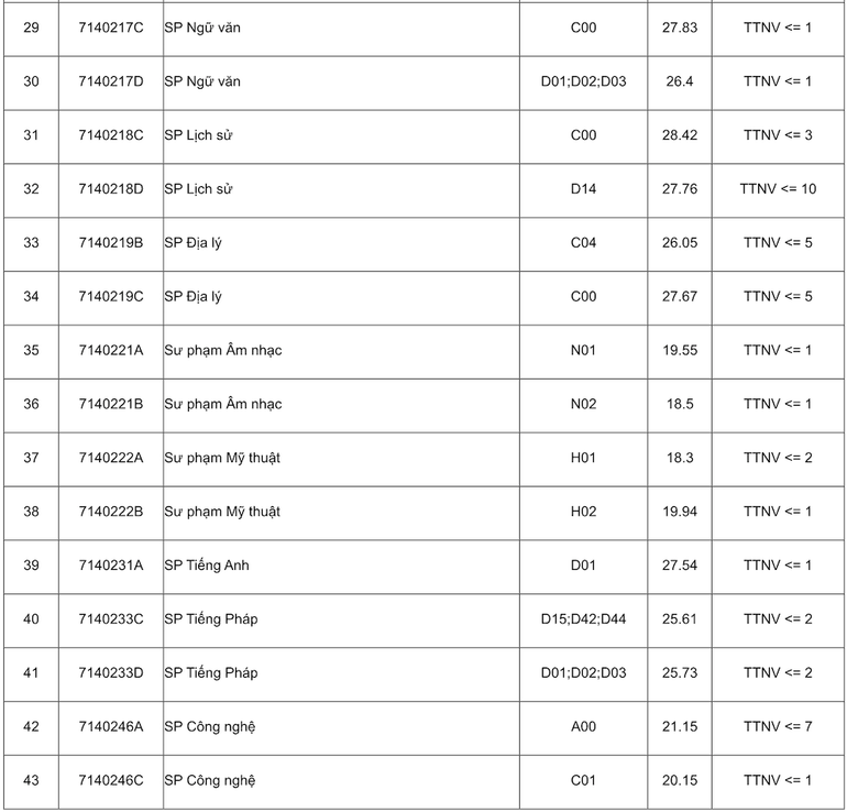 Điểm chuẩn của Trường đại học Sư phạm Hà Nội năm 2023 đối với các ngành khác (thang điểm 30) như sau: