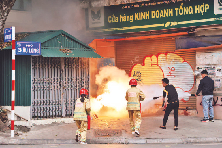 Để bảo đảm an toàn phòng cháy chữa cháy, vừa qua, quận Ba Đình đã tổ chức diễn tập chữa cháy và cứu nạn, cứu hộ phối hợp nhiều lực lượng, phương tiện tại chợ Châu Long. Cuộc diễn tập huy động gần 100 cán bộ, chiến sĩ và phương tiện của các lực lượng trên địa bàn quận, thể hiện phương châm “4 tại chỗ”, huy động tổng lực người và phương tiện tổ chức xử lý kịp thời, cứu người trước, tài sản sau…, hạn chế đến mức thấp nhất thiệt hại.