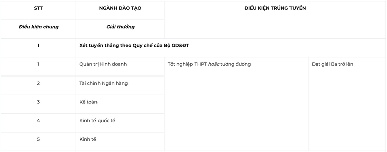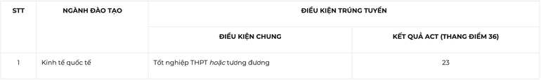 Điều kiện tuyển thẳng, điểm chuẩn xét tuyển Đánh giá năng lực, SAT, ACT năm 2024 của Trường đại học Kinh tế