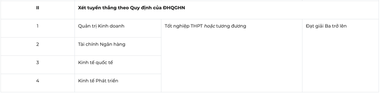 Kết quả xét tuyển thẳng theo quy chế của Bộ Giáo dục và Đào tạo và quy định của Đại học Quốc gia Hà Nội: