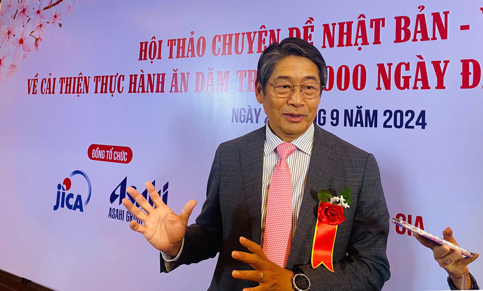 Ông Sugano Yuichi, Trưởng Đại diện Văn phòng JICA tại Việt Nam cho biết, từ năm 2023, JICA đã triển khai Dự án "Khảo sát kiểm chứng thương mại hóa cải thiện sức khỏe bà mẹ và trẻ em trong 1.000 ngày đầu đời tại Việt Nam'' cùng với Viện Dinh dưỡng quốc gia và các chuyên gia Việt Nam khác. Mục tiêu chính của dự án này là phổ biến kiến thức và kinh nghiệm của Nhật Bản về chế độ ăn uống và dinh dưỡng hợp lý cho phụ nữ có thai và đang cho con bú cũng như trẻ nhỏ tới nhân viên y tế và các bà mẹ.