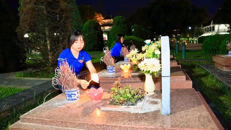 Tại Nghĩa trang Liệt sĩ A1 (ở trung tâm thành phố Điện Biên Phủ), có hàng trăm đoàn viên thanh niên xếp theo hàng lặng lẽ đi từng phần mộ thắp nến, dâng hương; chẳng ai nói với ai, nhưng các em đều bước thật khẽ như để không "đánh thức" các anh giữa màn đêm tĩnh mịch.