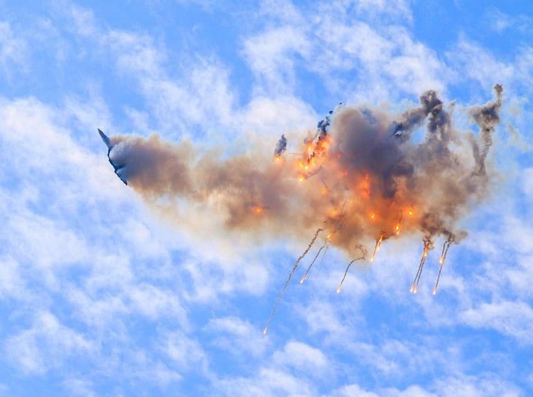 Biên đội Tráng sĩ Nga là một trong những nhóm trình diễn kỹ thuật lái máy bay sử dụng máy bay tiêm kích hiện đại nhất. (Ảnh: Trần Hiếu/TTXVN)